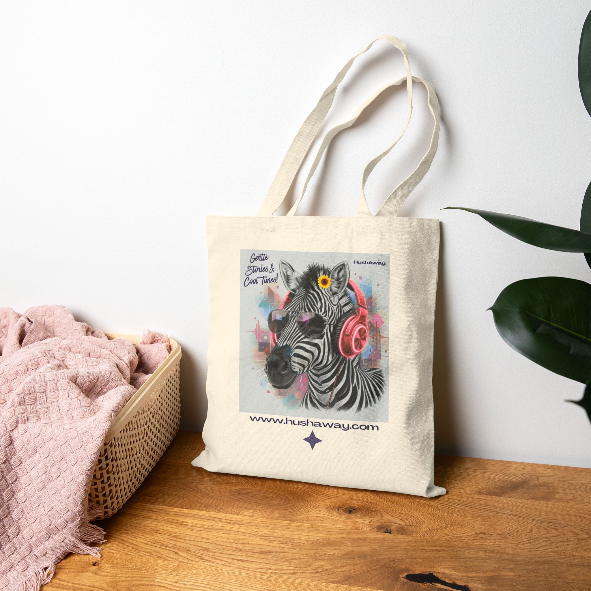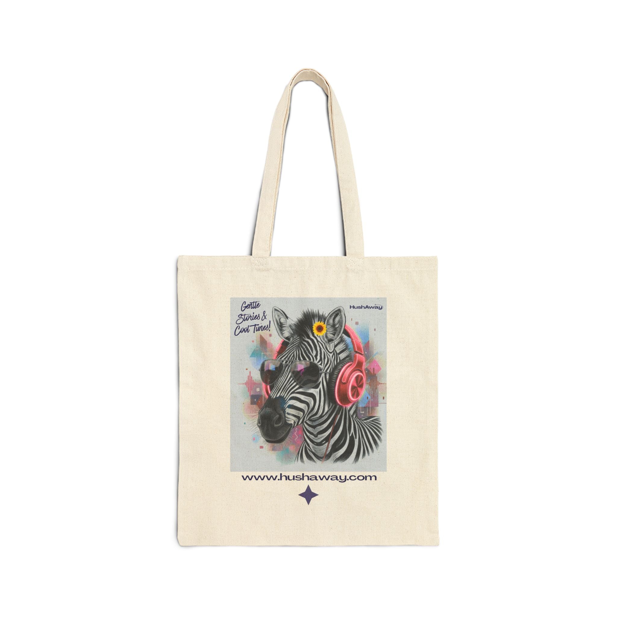 Cotton Canvas Tote bag - Zebra with Headphones